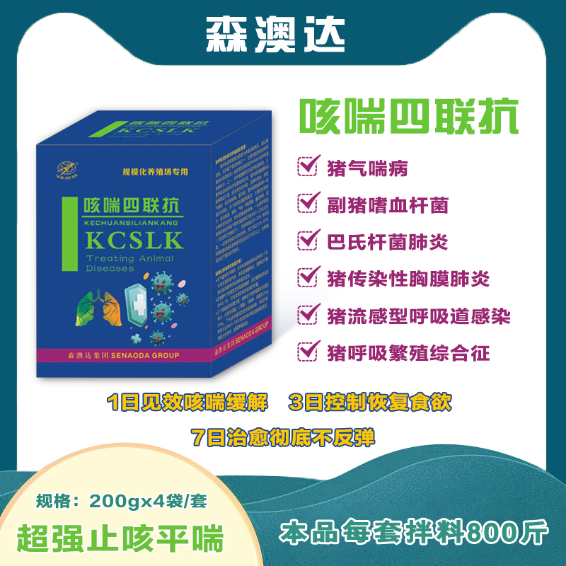 ● 當(dāng)氣溫突然下降時,對所有豬群使用本品拌料5-7天,可有效預(yù)防喘氣病、傳染性胸膜肺炎、副嗜血桿菌、肺炎鏈球菌等呼吸道疾病的發(fā)生。