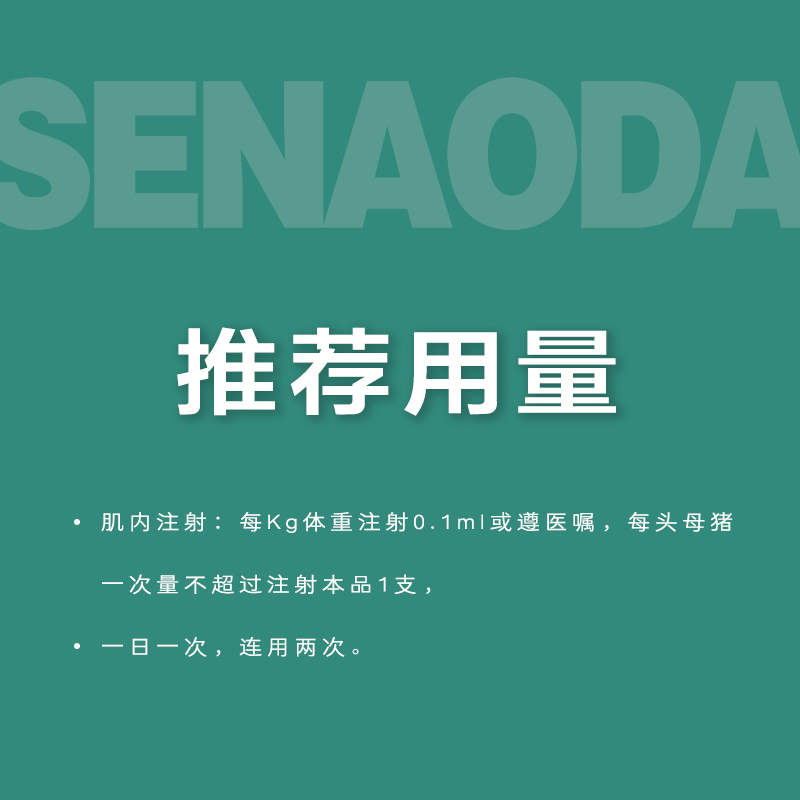 肌內注射:每1Kg體重注射0.1ml或遵醫(yī)囑,每頭母豬一次量不超過注射本品1支,一日一次,連用兩次。